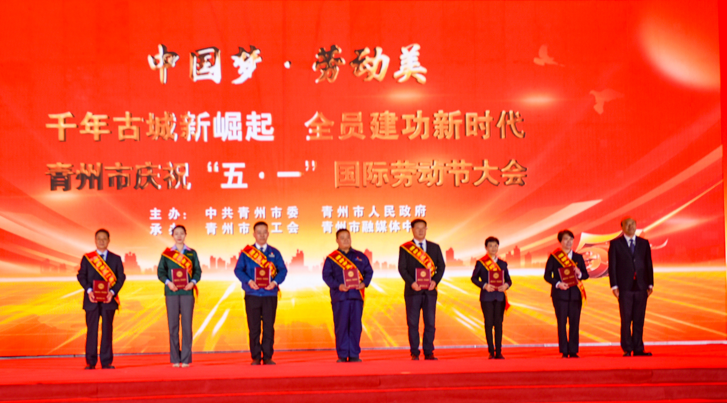 4月28日晚,“中国梦·劳动美 千年古城新崛起 全员建功新时代”青州市庆祝五一国际劳动节大会在东夷文化广场举行。潍坊市总工会党组书记、常务副主席贾平,青州市委书记宋伟伟,市委副书记、市长田永全,市人大常委会主任陈同洲,市政协主席王海华,市委副书记蒋建新等市领导出席活动,全国劳动模范、山东华邦建设集团党委书记、董事长赵本明等历届各级劳模工匠代表和今年受表彰的山东省劳动模范、山东华邦建设集团总裁刘庆云等各级劳模工匠、2023年“青州最美劳动者”参加活动。